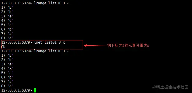 语法:lset key index value