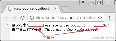 echo '去空白后的字符串:' . trim($str);