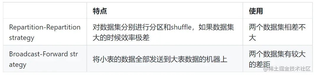 - 如果两个数据集差不多,建议采用 Repartition-Repartition strategy。