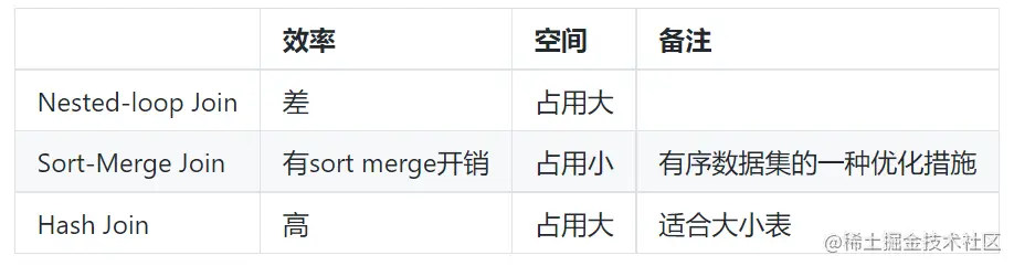 注意:Sort-Merge Join 和 Hash Join 只适用于 Equi-Join ( Join 条件均使用等于作为比较算子)。