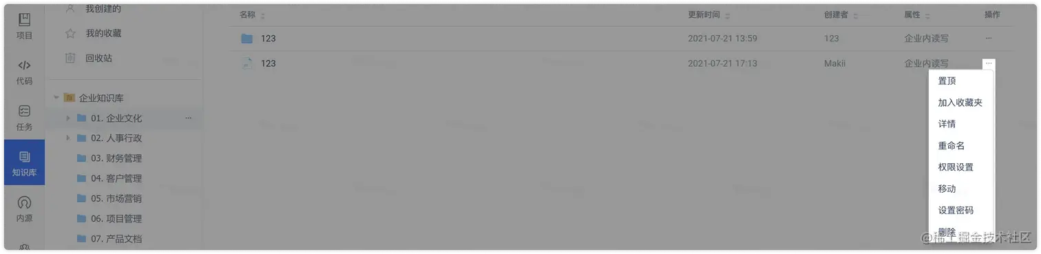 - 方式一:找到需要设置权限的 文件夹/文档/附件,点击右侧的“···”,并选择“权限设置” ,即可在弹窗中设置该文件的权限