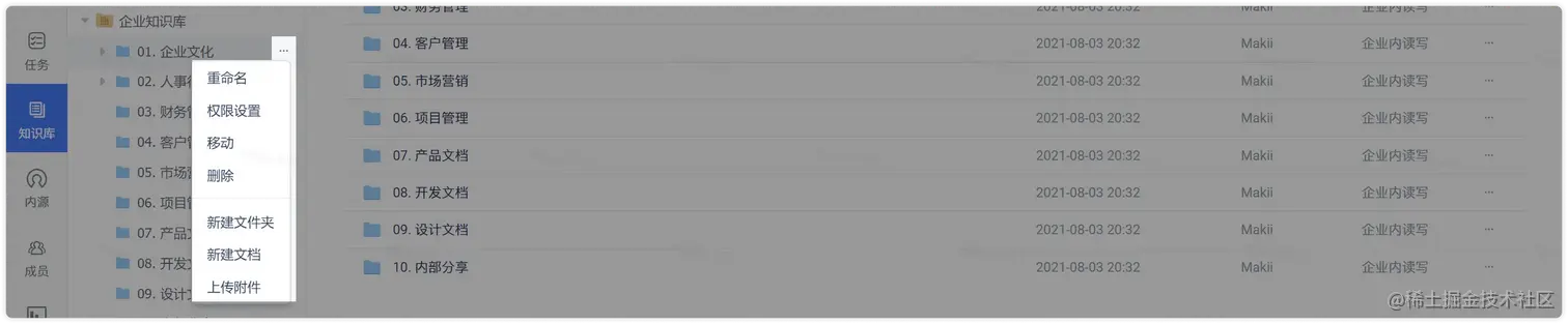 - 方式二:在左侧导航区,找到需要设置权限的文件夹,点击右侧的“···”,并选择“权限设置”,即可在弹窗中设置该文件夹的权限