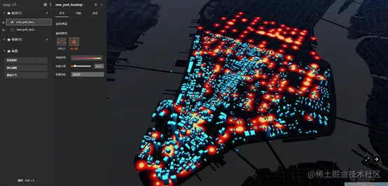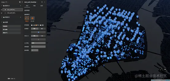 点图层由带有地理位置(coordinates)的点要素构成。点图层基础样式有常规点和热力图,可以将矢量符号、图片、模型表现在3D地图中。可以用于添加并显示城市地标、地铁站、热力图等。