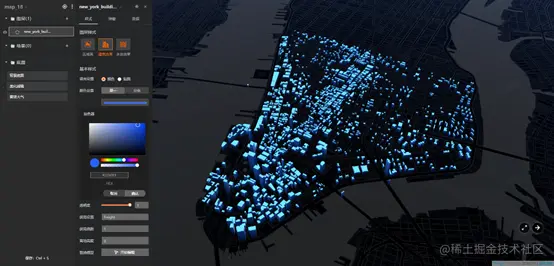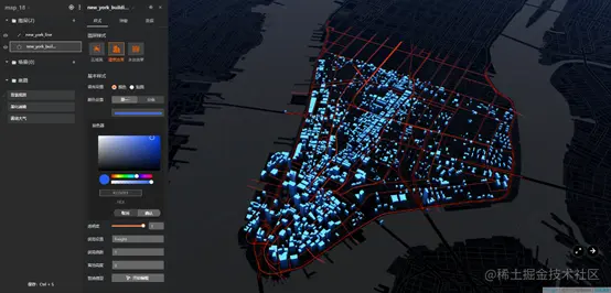 3D城市搭建过程中需要不同的效果来实现不同的功能,如添加水系、道路、热力图等。这时候就需要了解CityBuilder的图层类型了,图层类型分为点图层、线图层和面图层。不同类型的图层,可调节的图层样式有所不同。