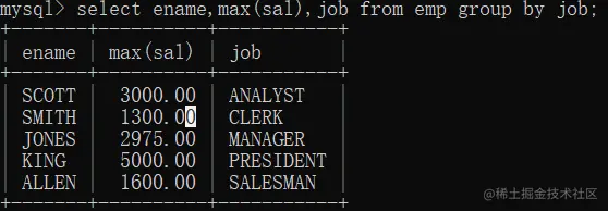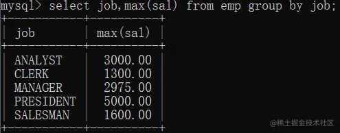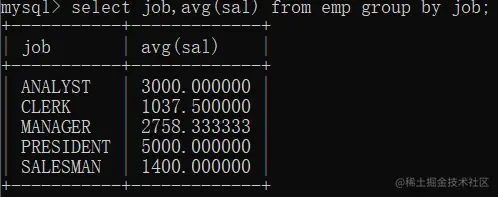 重点: 记住一个规则,当一条语句中有 group by 的话,select后面只能跟分组函数和参与分组的字段。