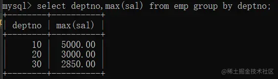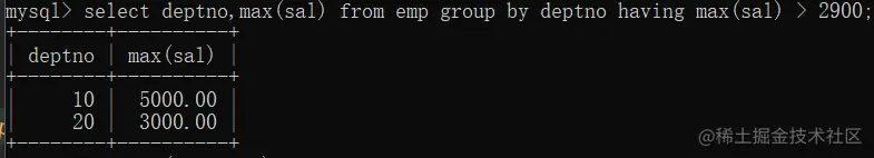 select deptno,max(sal) from emp where sal > 2900 group by deptno;