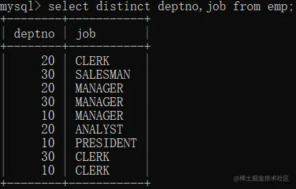 4.1 关于查询结果的去重 (关键字 distinct ,去除重复记录)