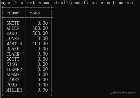 ifnull(可能为NULL的数据,被当做什么处理) : 属于单行处理函数。