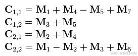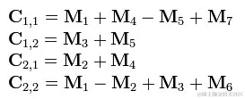 - 而最后的结果矩阵C 可以通过组合上述7个新矩阵得到: