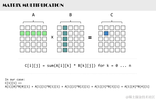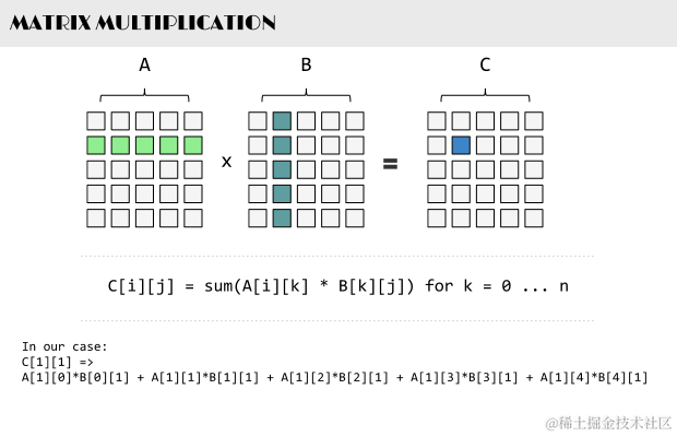 matrixC[i][j] += matrixA[i][k] * matrixB[k][j];