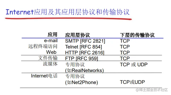 那么应用协议是应用的全部吗?不对,应用协议仅仅是应用的一个组成部分。比如一个 web 应用,除了协议还包括 web 客户端、Web 服务器、HTML 等等。实际上协议只是规范了,我跟你在通信的过程当中应该遵守的规则而已。所以说,应用协议仅仅是应用的一部分。