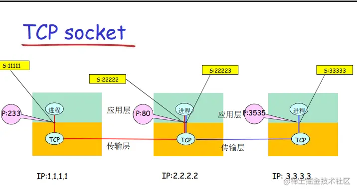 我们把一个 IP 上的 TCP 上的某个端口称之为端节点,所以,任何一个应用进程之间的任何一对应用进程之间的通信,都可以用两个端点来表示,这样就解决了标识的问题。