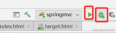 这里的 Application context 就是应用上下文了,比如我要访问 /target,实际项目启动后在浏览器中访问的是:http://localhost:8080/springmvc/target 。