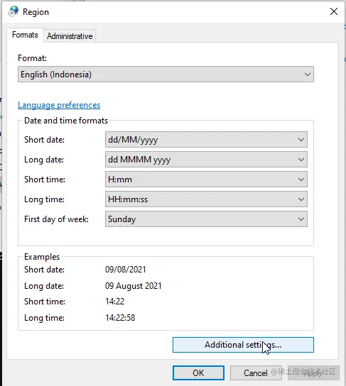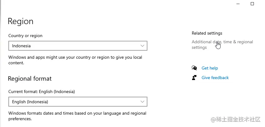 2.进入相关设置,打开额外的日期、时间和区域设置