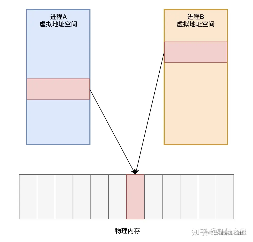 我准备了几个内存页面,你将它们映射到你的进程地址空间中,咱们就能共享这一片内存,你写的数据我能立即看到,我写的你也能立即看到,虽然咱们各自读写的地址不同,但实际上是访问的同一片物理内存页面,比管道和消息队列效率高多了!