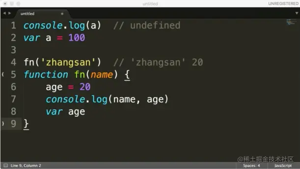 使用var关键字声明的变量( 比如 var a = 1),会在所有的代码执行之前被声明(但是不会赋值),但是如果声明变量时不是用var关键字(比如直接写a = 1),则变量不会被声明提前。