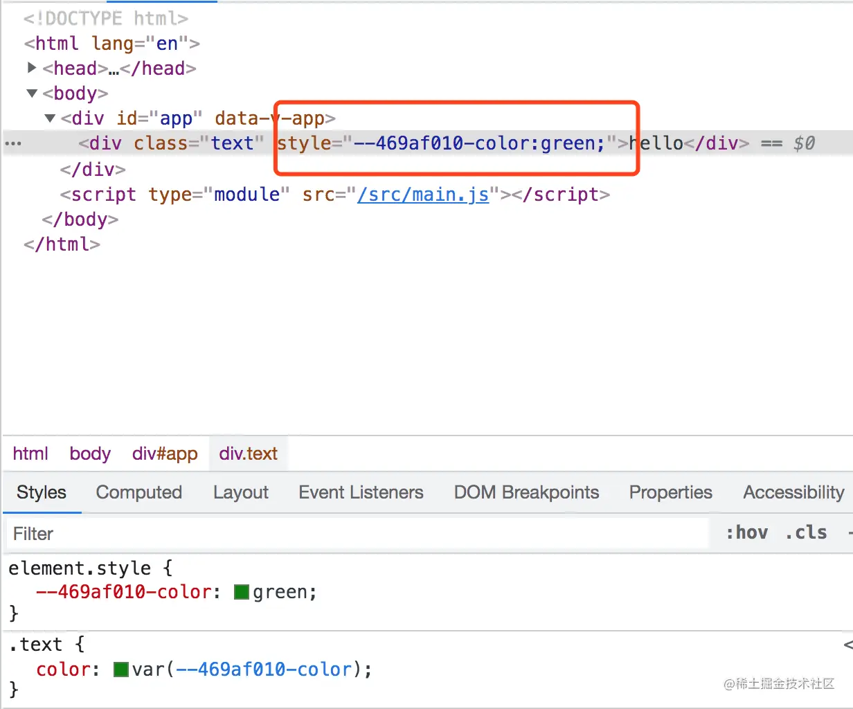 其中v-bind(color)会成为CSS变量: