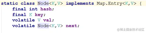 定义基本和1.7中的HashEntry相同。而这个map本身所持有的也是一个Node型的数组