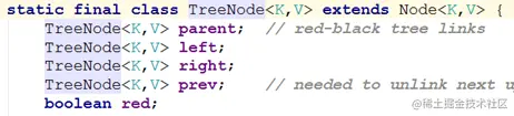 TreeNode 继承 Node,但是数据结构换成了二叉树结构,是红黑树的存储结构,用于红黑树中存储数据;