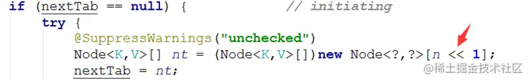 第一部分是构建一个nextTable,它的容量是原来的2倍。