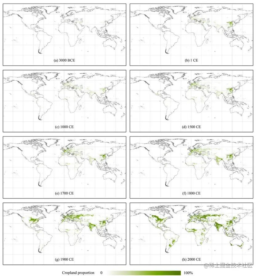 这套数据,从史前一万年到未来一百年的耕地制图。史前数据无法验证,未来数据不可测。但不可否认这篇论文的优秀,切入点和方法都是有理有据,点赞。