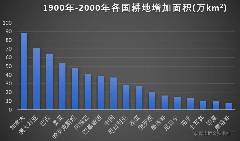 这个数据的准确性可以考虑使用统计数据验证下,但统计数据不好找,考虑下历史书。能粗略得出一个结论:阿三在公元1500年前还没有大规模开荒,这个开荒过程发生在公元1500年-公元1900年之间(感觉像是废话),20世纪后,阿三的后备土地资源就显得明显后劲不足了。