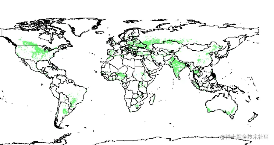 既然有了数据,那就用这套数据做点东西,看看全球公元1500年到公元2000年,耕地增加的区域。思路也很简单: