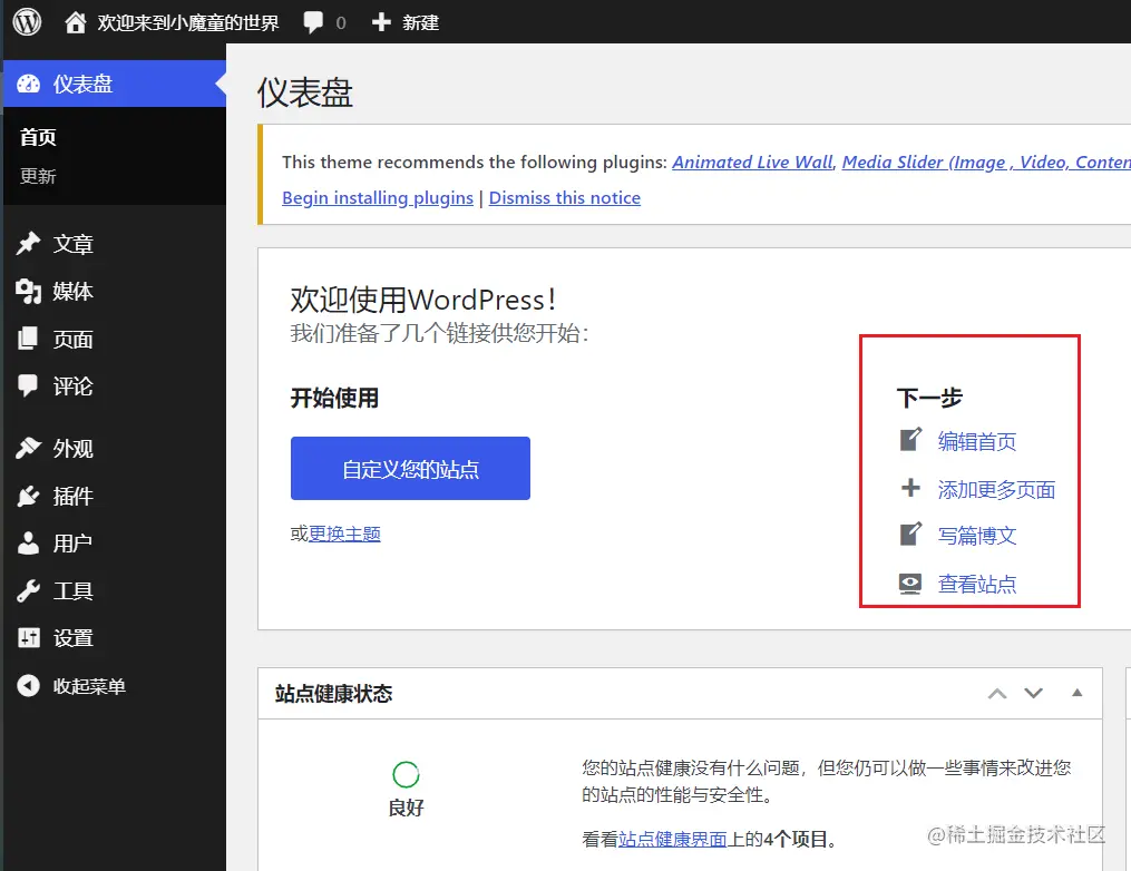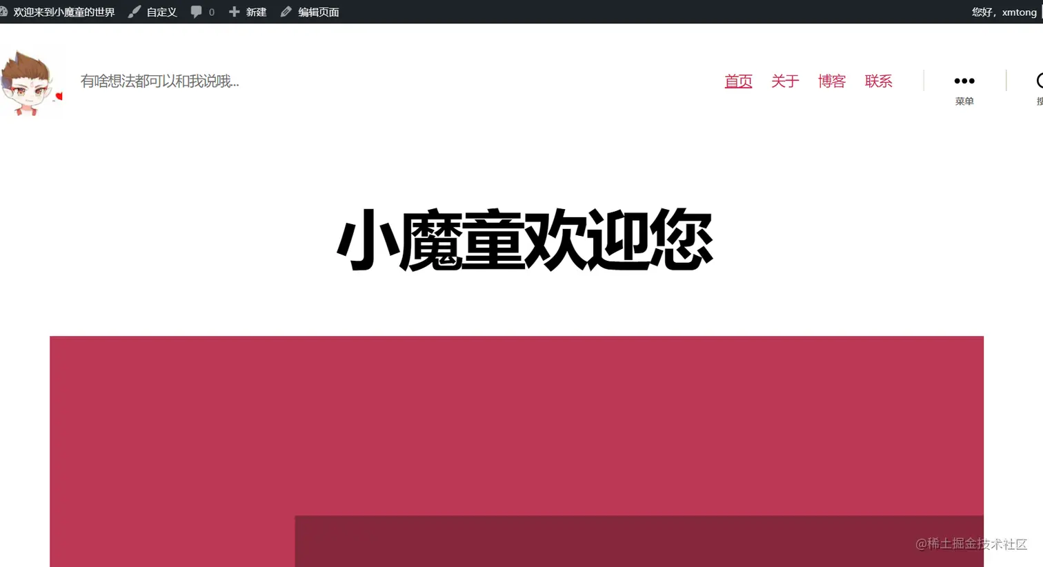wordpress 的界面是这个样子的,里面的功能很多,直接就在页面上定制化我们自己的页面,非常方便,xdm 可以尝试一波,不亏