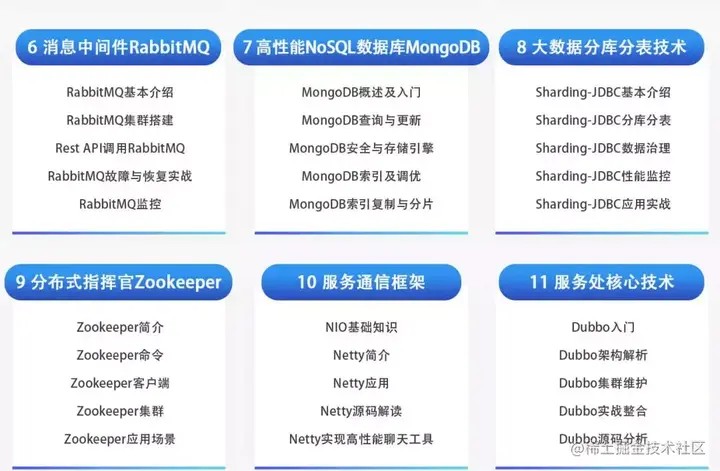 第三阶段主要注重架构实践:从高并发高级群分布式、高可用可扩展、Java高并发系统架构实例、高并发数据库设计、MySQL主从复制和高可用集群、海量数据库架构设计等方面学习。