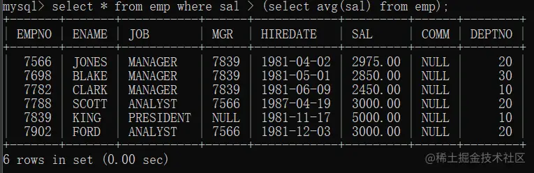 select语句当中嵌套select语句,被嵌套的select语句是子查询。