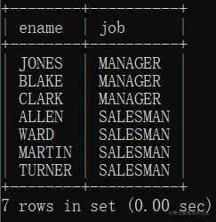 案例 : 找出工作岗位是SALESMAN和MANAGER的员工