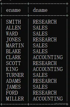 select e.ename,(select d.dname from dept d where e.deptno = d.deptno) as dname from emp e;