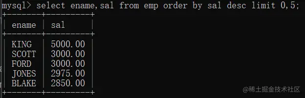 select ename.sal from emp order by sal desc limit 0 , 5;