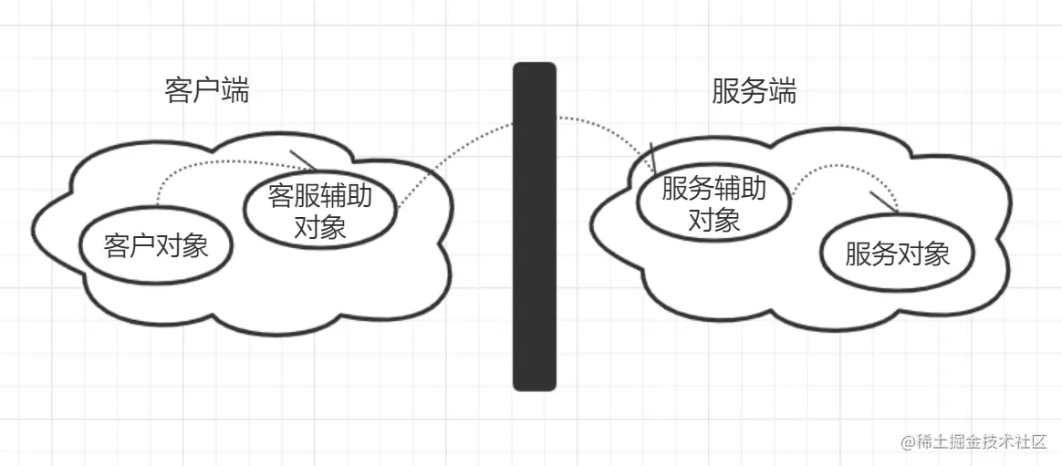 在客户端我们使用客户辅助对象进行调用,客户辅助对象进行远端调用,对于客户对象来说就像是在调用本地的方法一样。