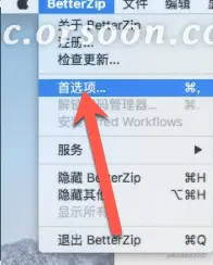 1、打开Better Zip软件,点击顶部菜单栏Better Zip选项,选择首选项。