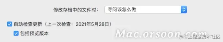 3、我们可以看到在最下方的检查更新位置,勾选自动检查更新,包括预览版本。
