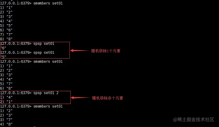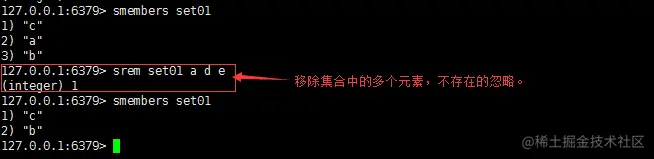 功能:移除集合中一个或多个元素,不存在的元素被忽略。