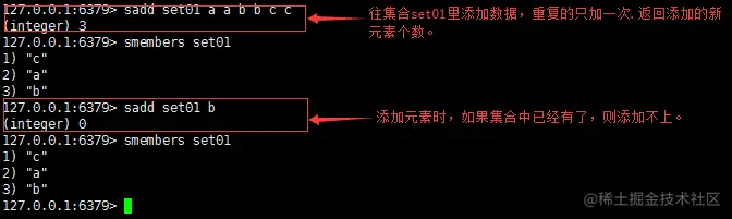 功能:将一个或多个 member 元素加入到集合 key 当中,已经存在于集合的 member 元素将被忽略,不会再加入。