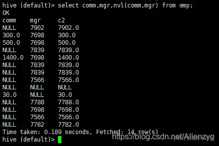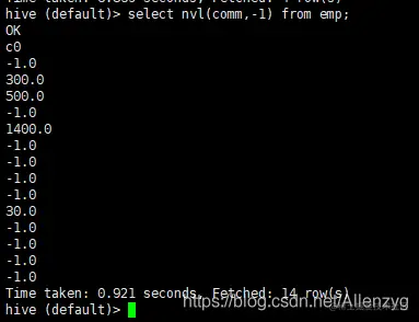 hive (default)> select * from emp where comm is null;