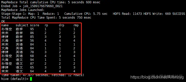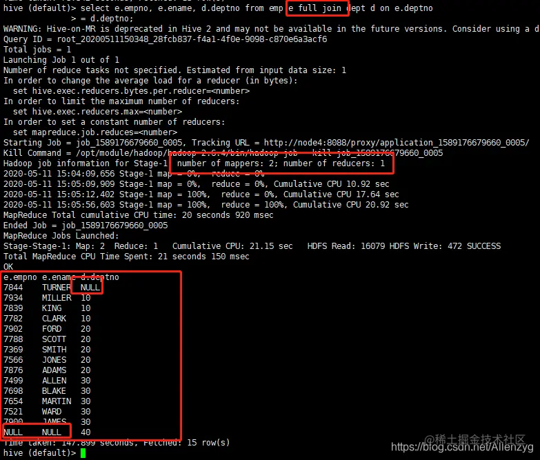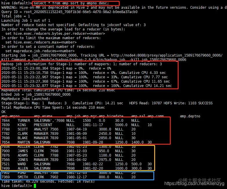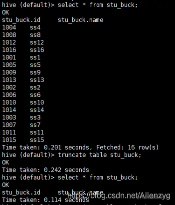 hive (default)> select empno, ename from emp;