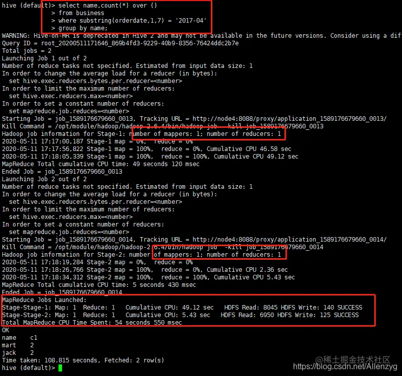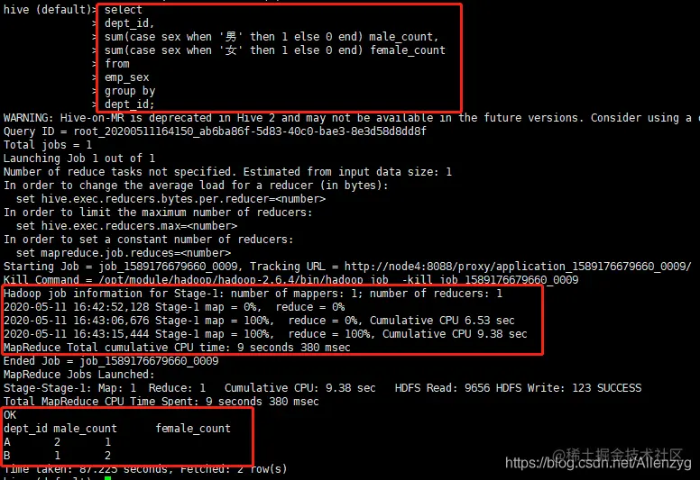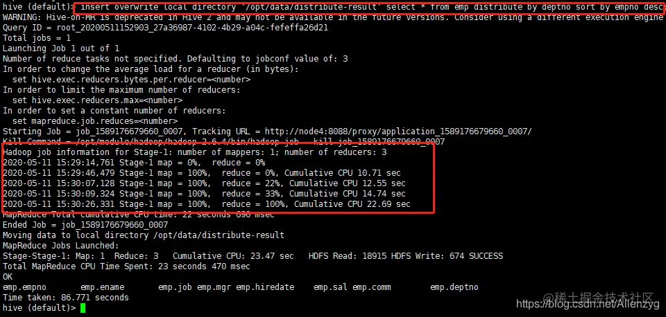 hive (default)> select count(*) cnt from emp;