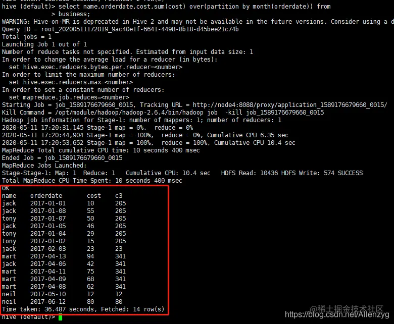 sum(cost) over(partition by name order by orderdate) as sample3,--按 name 分组,组内数据累加