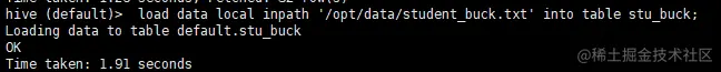 load data local inpath '/opt/data/score.txt' into table score;