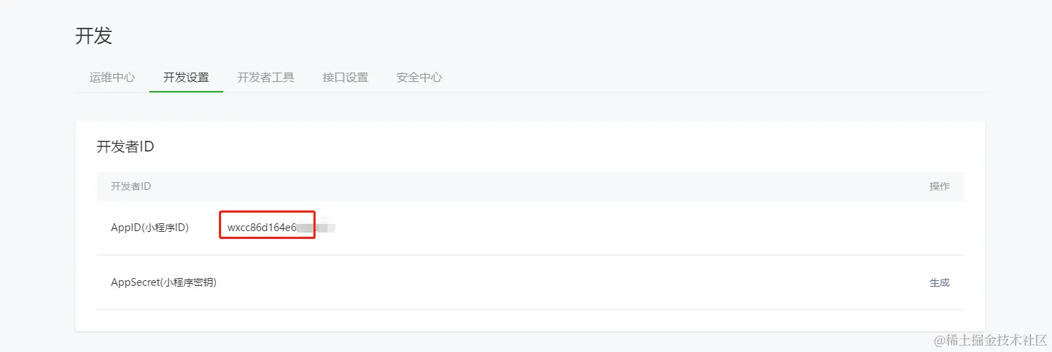 进入开发设置界面 复制appid 一会开发需要用到