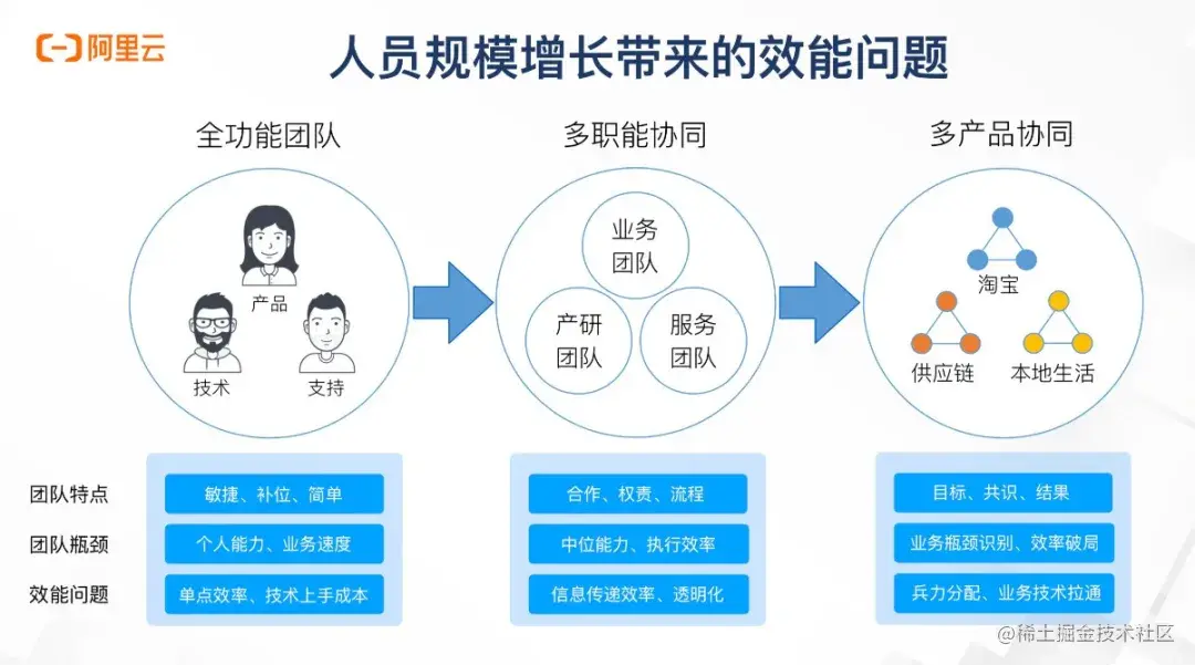经过这三种产品架构、技术架构、组织架构的分析,相信大家可以理解团队不断演进过程中面临的效能困局。