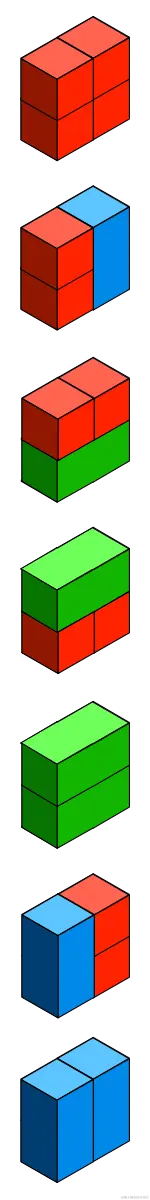 第33题、 用 1×1×1, 1× 2×1以及2×1×1的 三种木块(横绿竖蓝,且绿蓝长度均为2),