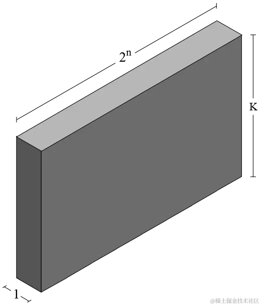 搭建高长宽分别为K × 2^N × 1的墙,不能翻转、旋转(其中,0<=N<=1024,1<=K<=4)