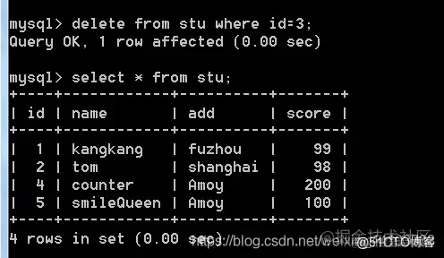语法:delete from 表名 [where 条件];