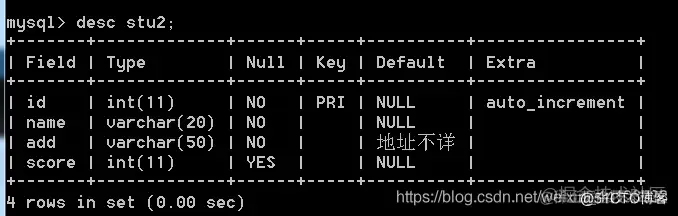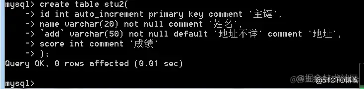 语法: show create table stu2;