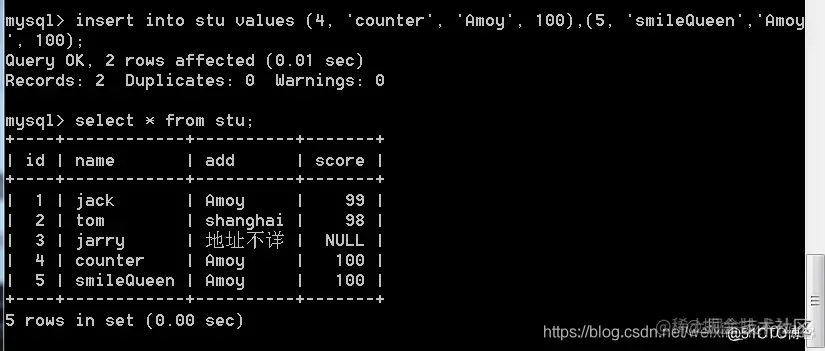 我们再插入几条数据: